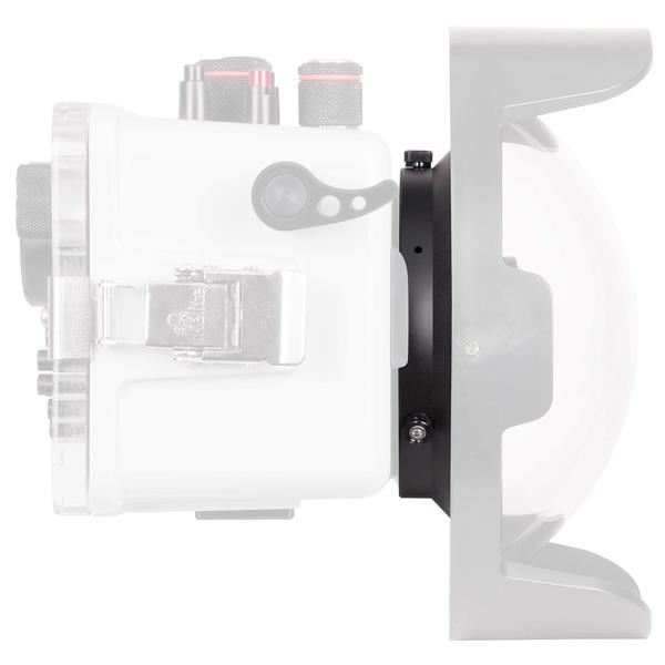 The dome needs be very close to the front of the housing to provide the best images possible with super wide angle lenses. The proximity of the port to the housing precludes the use of zoom function when using this adapter. Lenses must be used at a fixed focal length.