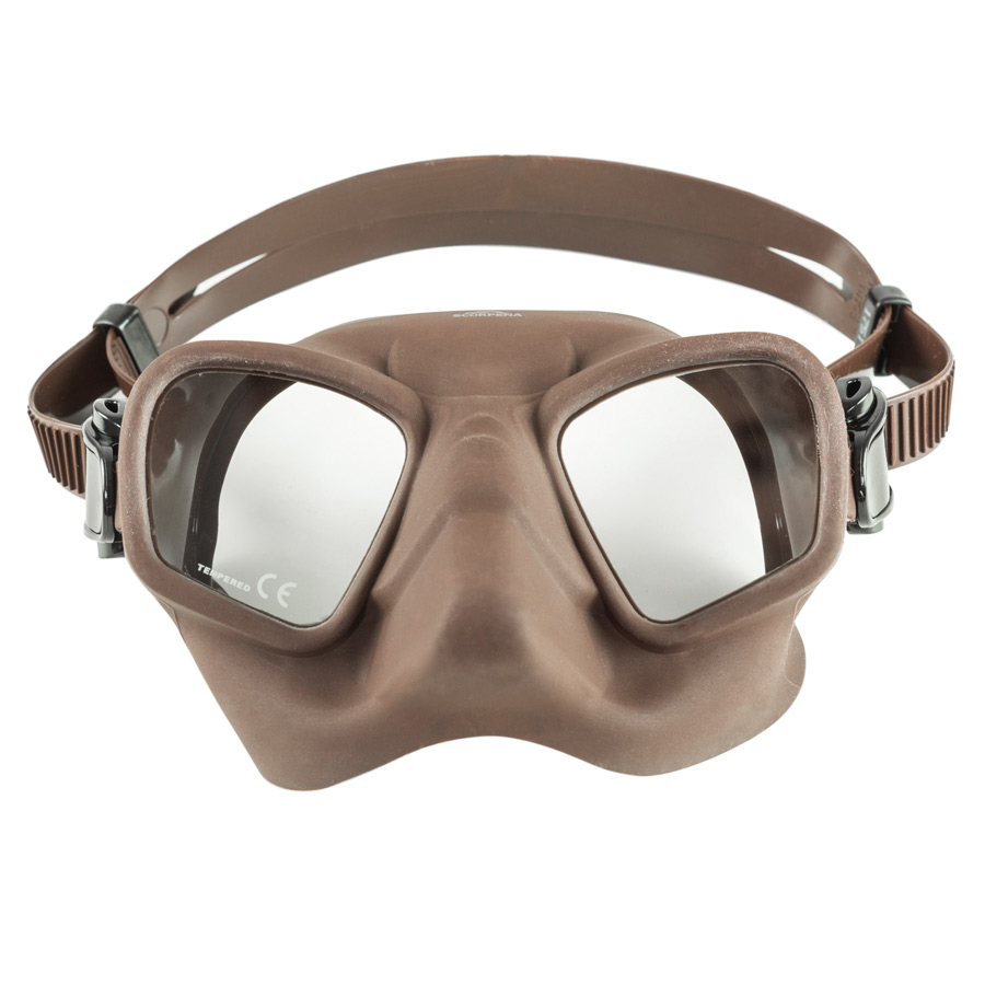 Modern and stylish mask T is ideal choice for deep-sea hunting or freediving. The lenses of the mask are integrated directly into the silicone obturator, so the mask has a minimal inner volume which allows you to use very little air to compensate for the pressure inside the mask during deep dives. Buckles with micrometric adjustment are mounted on a silicone obturator, which makes the mask even more compact and easy to carry and store. Due to its small size it can be used as a duplicate mask for diving. Matte surface of the mask does not shine and is pleasant to the touch.