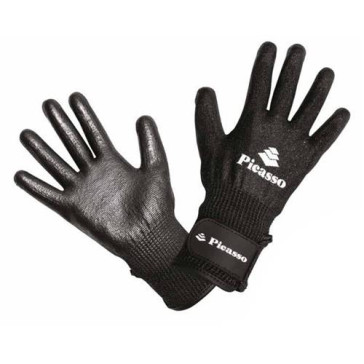 The use of this fiber on these gloves makes it a very thin and seamless glove, but extremely tough. The palm and the fingers are reinforced with a coat of polyurethane, to increase grip without compromising sensitivity.