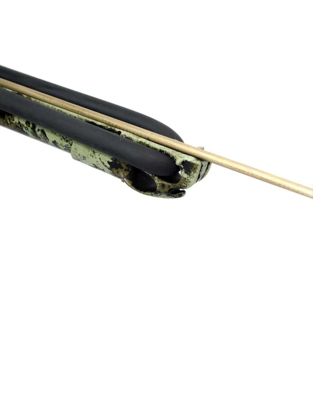 Spearfishing gun with an extremely lightweight 28mm camo aluminum tube, weighing almost identically to a carbon tube with a guide! Integrated spear guide for greater shooting accuracy! Cobra stock with side line holder and ergonomic rubber grip Magnum open head 6.5mm stainless steel spear 16mm circular boom band, equipped with an articulated warhead 1.8mm monofilament and sleeves