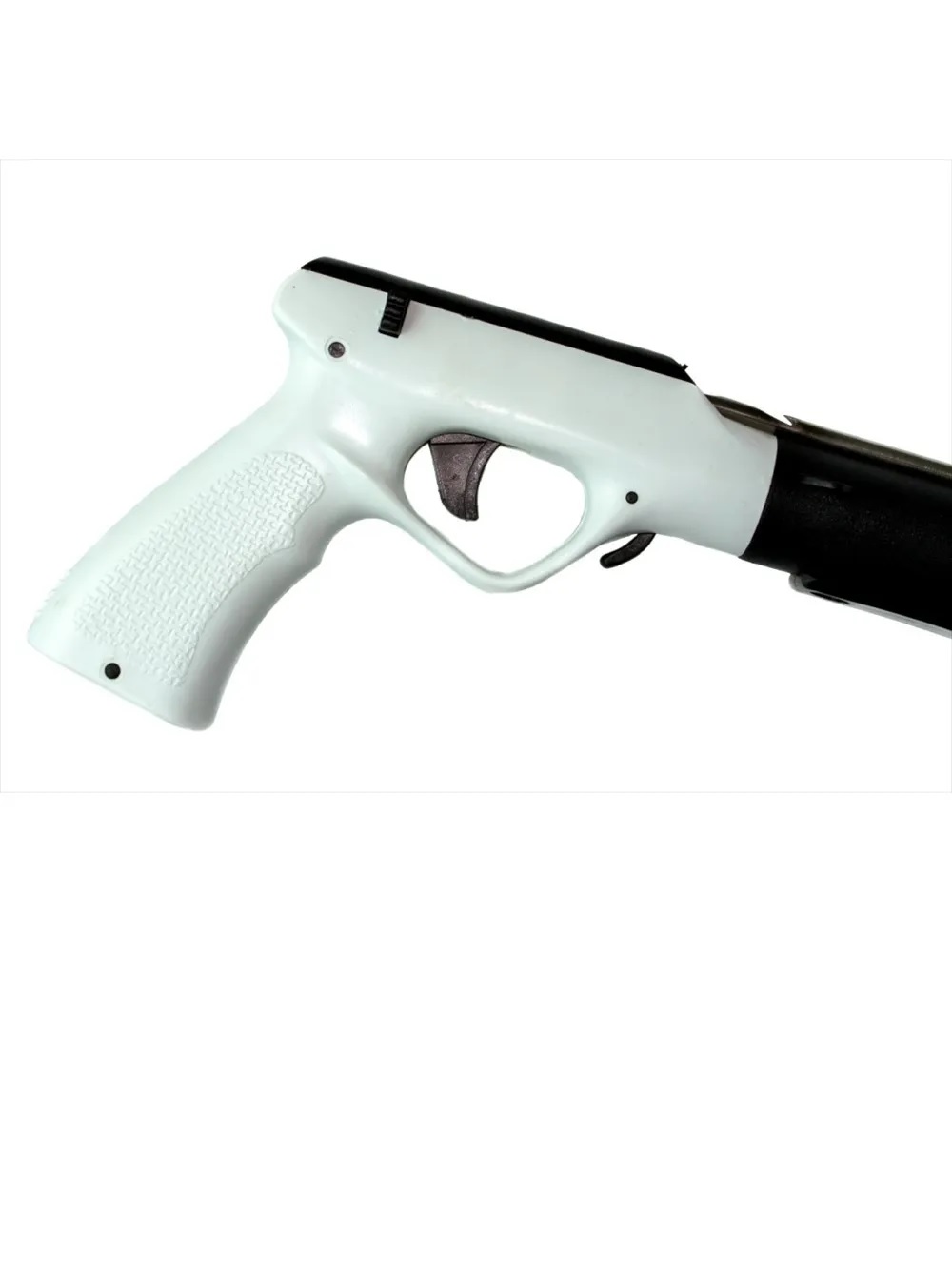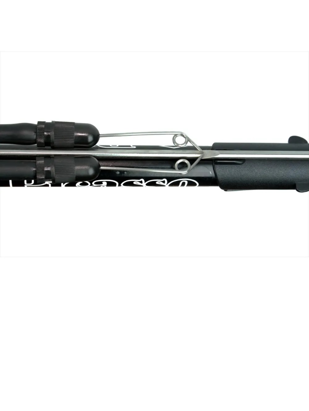 Speargun with 28mm black aluminum tube and closed head Equipped with 6mm stainless steel spear, pair of standard 16mm elastic bands, spring-loaded spearhead and 1.5mm braided line.