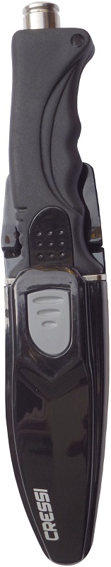 SKORPION is a modern knife with a state-of-the-art design and medium dimensions, with a durable blade of AISI 304 tempered steel, with one smooth edged blade and the other side serrated with a rope cutter included. The handle has an anatomical shape and is composed of “soft grip” material for a secure grip. It is separated from the blade by an integrated polymer guard. Includes a pommel constructed of the same material as the blade. The sheath is made of black polymer with straps for attachment to the thigh or belt. The knife attaches to the sheath by means of a spring push button integrated into the sheath itself for rapid use.