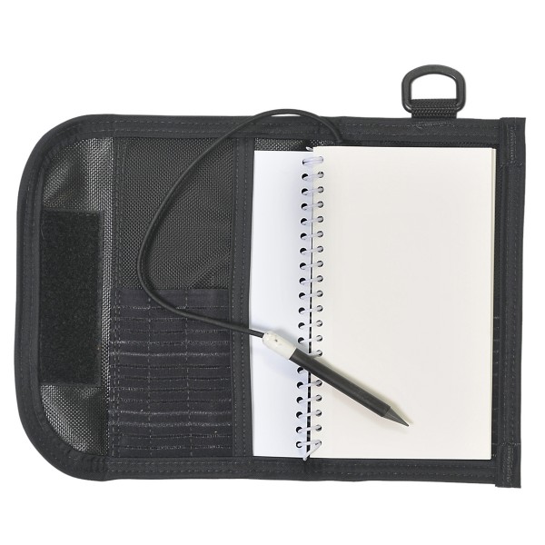 The Dive wRites Notebook combines our 28 waterproof page notebook and graphite pencil with our ballistic nylon notebook cover. Inside the notebook cover are 3 non-slip pencil sleeves and a non-slip pocket for a survey compass. The back cover pocket is clear to allow easy visibility of dive tables or check lists. Contents of the notebook are kept secure by a hook-and-loop flap on the notebook cover. A 1 inch plastic d-ring allows the notebook to be clipped off inside a pocket for extra security.