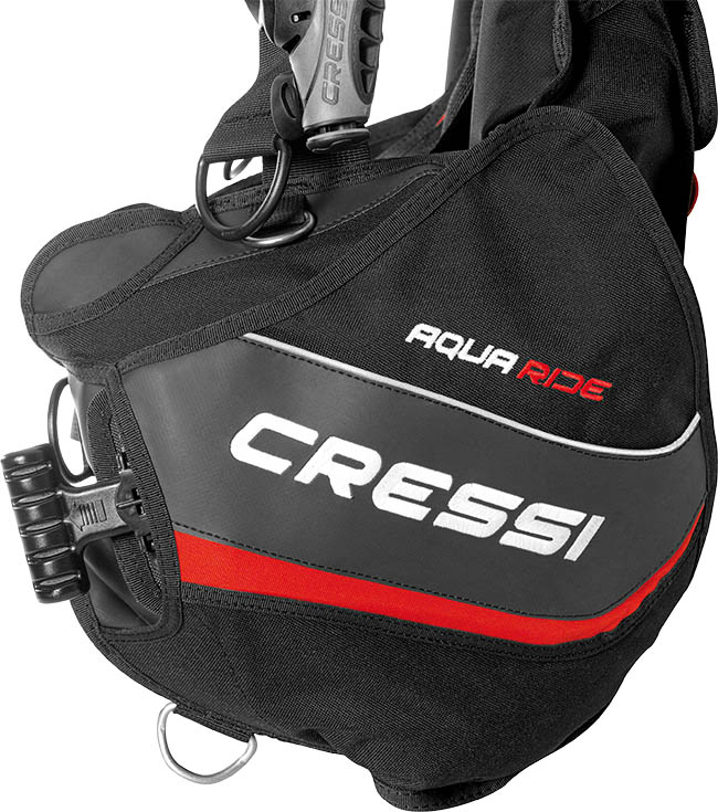 Aquaride is a semi-classic structured BC with a special feature: it has adjustable shoulder straps that aren’t restricted by the air cell, improving the grip on the tank and improving comfort. Thanks to their anatomical, preformed profile, they are much easier to put on and make resting the tank more comfortable on the shoulders. The BC features the Flat type Lock Aid System of integrated weight. It is very effective and comfortable thanks to its extremely flat profile and the easy and intuitive arrangement of the pockets. Finally, the anatomical control has a hose retainer, making all inflation and deflation operations very easy and intuitive.