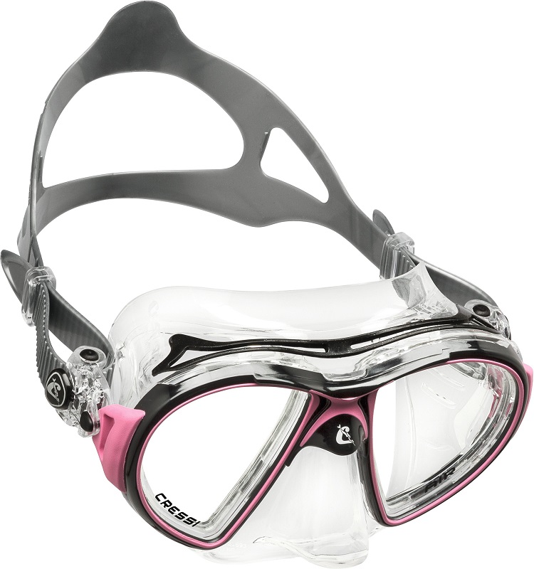 Not only has this new Cressi Crystal Silicone been chosen, with its exceptional softness and comfort, but the entire design of the skirt has followed new rules which allow a point of contact between the mask and the face that has a very open angle.
