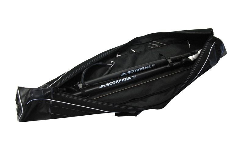 Case made of soft, washable and fast-drying durable material that provides excellent protection crossbow from sand, dust, scratches and dirt. It features a long front zipper, making the contents of the main compartment more visible and easily accessible. At the bottom are the strengthened anti-friction pads - legs. In case, if necessary, can accommodate up to seven different lengths crossbow. In addition to the gun in a bag can be placed a full set of diver equipment (see. Photo). For packing and storage of small accessories, is provided on the side wall pocket on zipper, divided into three compartments. For dense packing, regardless of the number of stacked crossbows, cover the middle part is equipped with two adjustable straps with quick disconnect buckles that help fix the gun. For convenient carrying bag is equipped with two straps with volume knobs that allow for short-term carrying of bags on his shoulders - like a backpack. And thanks to the pocket with a transparent window on the outside of the bag, it is convenient to identify each owner.